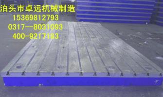 鑄鐵T型槽平板制成筋板式和箱體式,工作面有長(cháng)方形、正方形或圓形。工作面采用刮削工藝,工作面上可加工V形、T形、U形槽和圓孔、長(cháng)孔等。